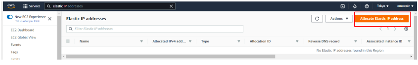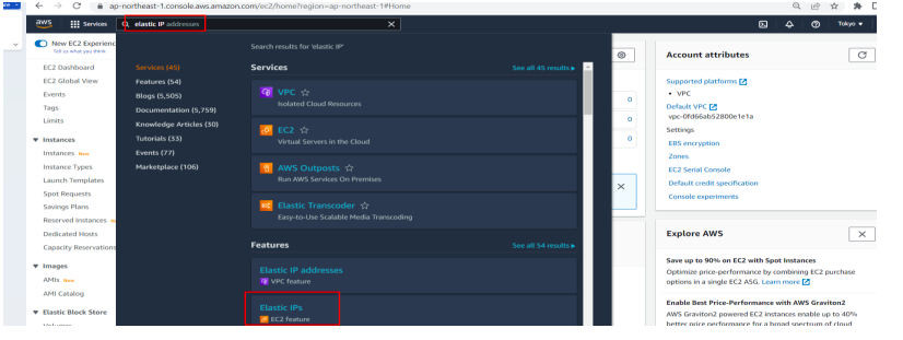 Search for Elastic IP services from AWS search bar and select Elastic Ips menu