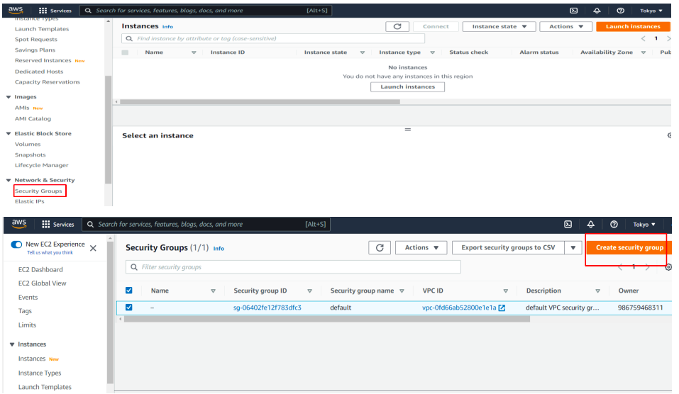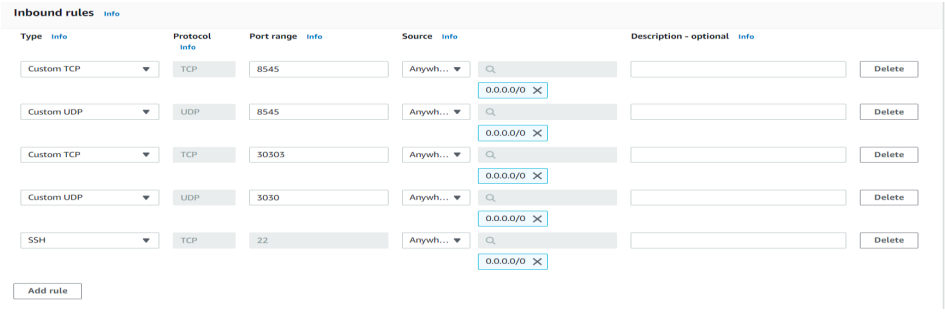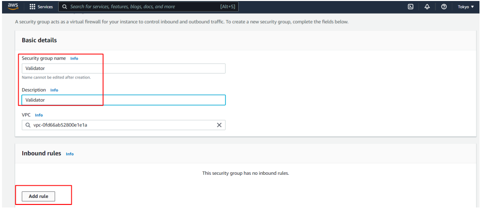 Click create security group fill the required fields ie name, description and click add rule to create inbound rules