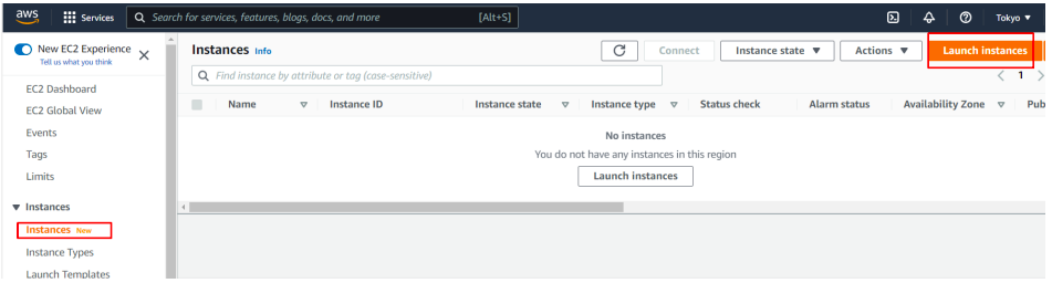 Select Instances-> click Launch instances