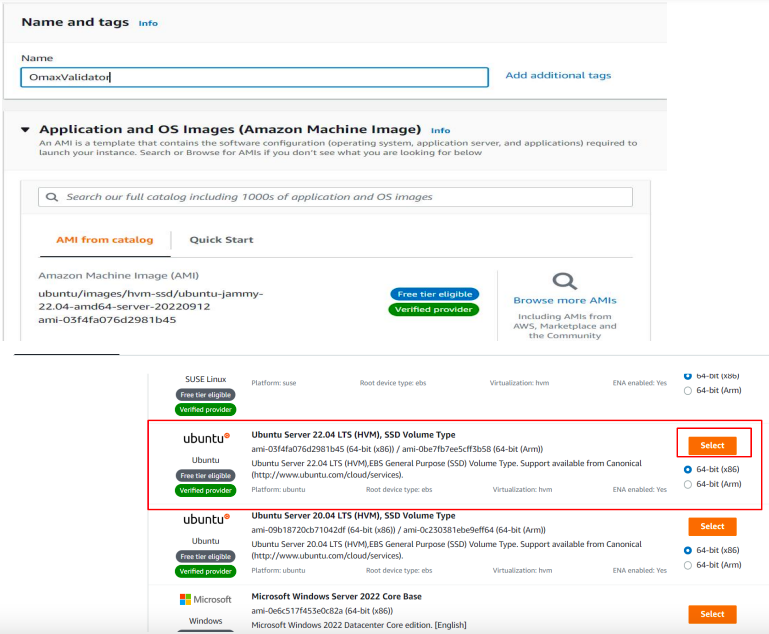 Select below AMI