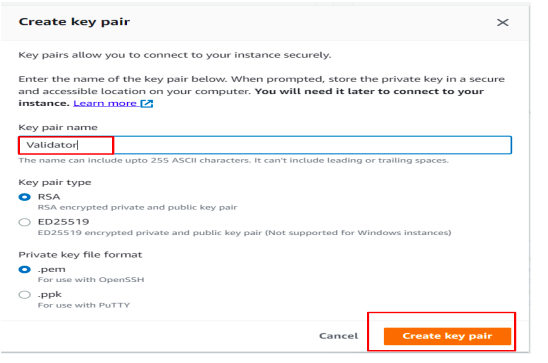 Create the Key pair and keep this key pair safely